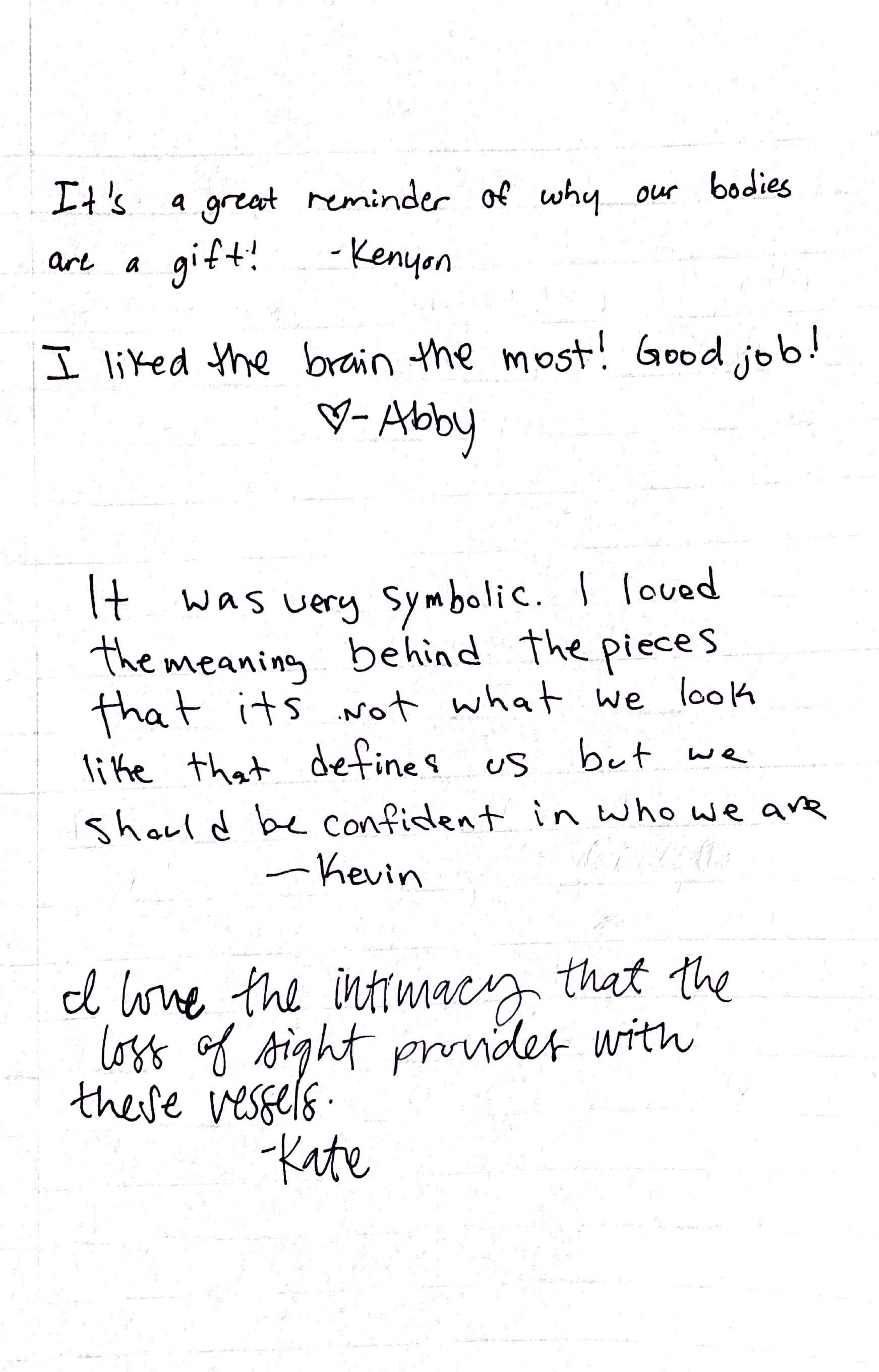This is a collaborative ceramic series that I conceptualized and directed. Three fellow students and I designed, created, and exhibited these 5 pieces to honor the aspects of the human body that aren’t visual. It was a transformative project for all involved!