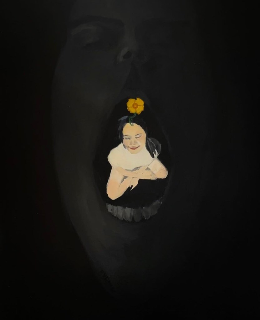 This was another painting that I made while I was in Vienna. I had been stewing on the idea for a while because I had been contemplating the pros and cons to being intelligent or ignorant. I invite the viewer to decide which figure represents which.